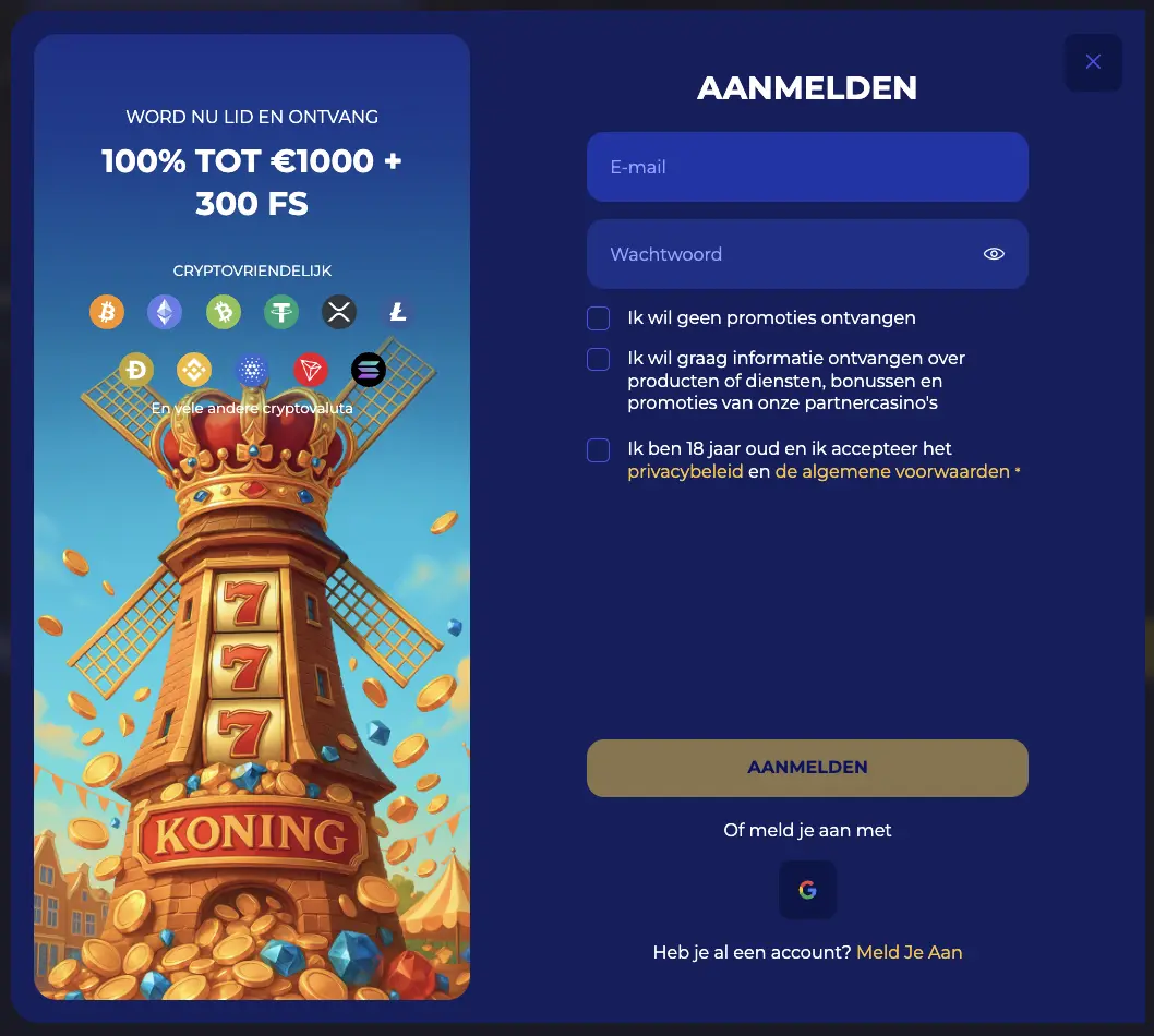 Zo claim je het enorme welkomstpakket van Koning Casino