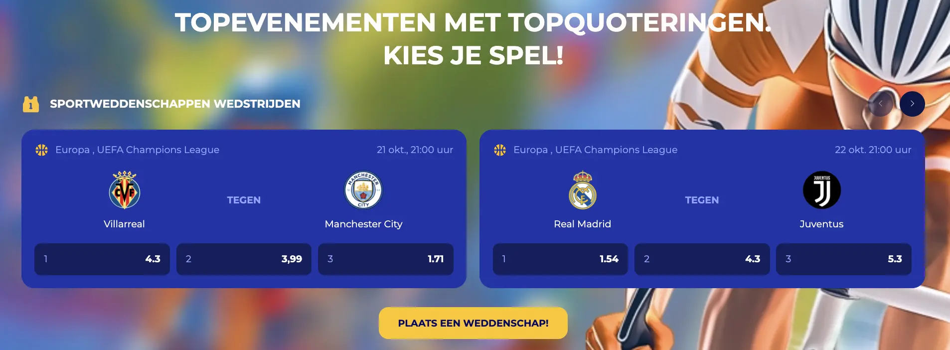 Dit zijn slechts enkele voorbeelden. In totaal kun je kiezen uit 38 sporten en meer dan 100 verschillende competities. Naast de echte sporten kun je bij Koning Casino Netherlands ook nog terecht voor het afsluiten van weddenschappen voor esports evenementen zoals Counter Strike of League Of Legends competities.