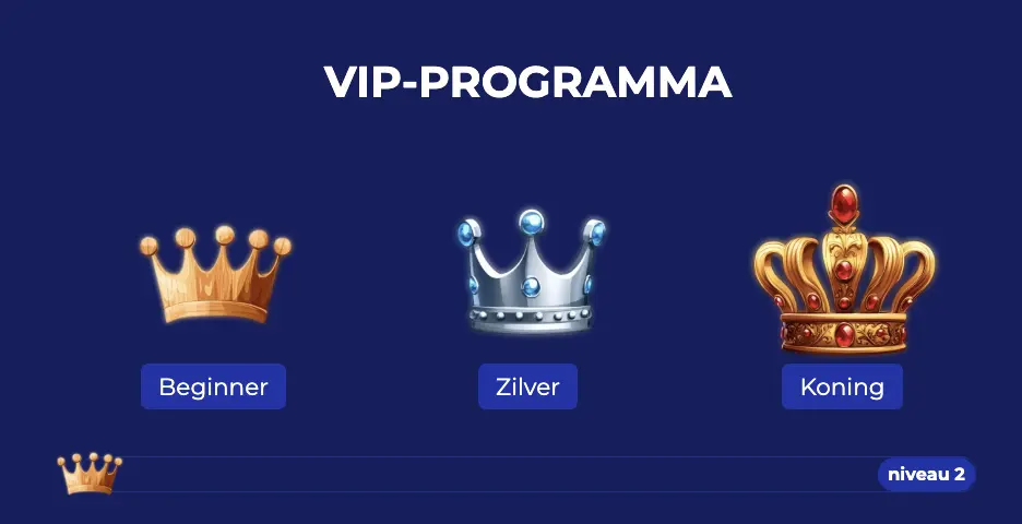 | Koning | 20% dagelijkse cashback + extra exclusieve bonussen, een enorm verjaardagscadeau en uitnodigingen tot exclusieve evenementen van casino Koning. |