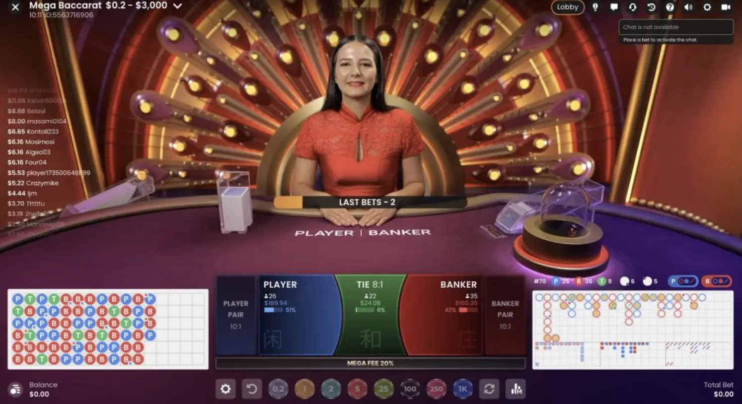 - Kies het optie dat je wilt spelen: Baccarat, Roulette, Blackjack of Poker.