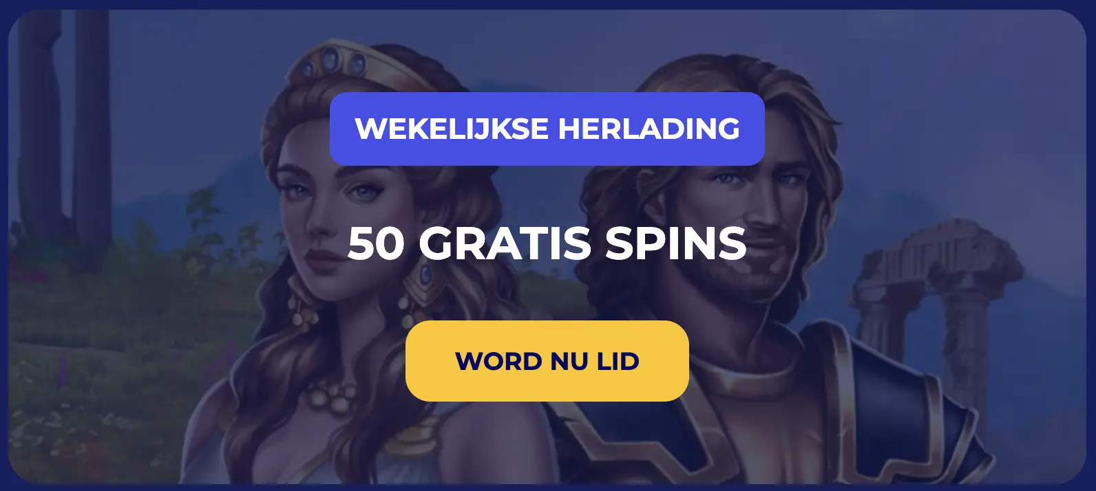 | Weekly Reload Bonus | Maak een storting van minstens €30 en krijg 50 gratis spins voor de populaire slots van die week. | WEEK |